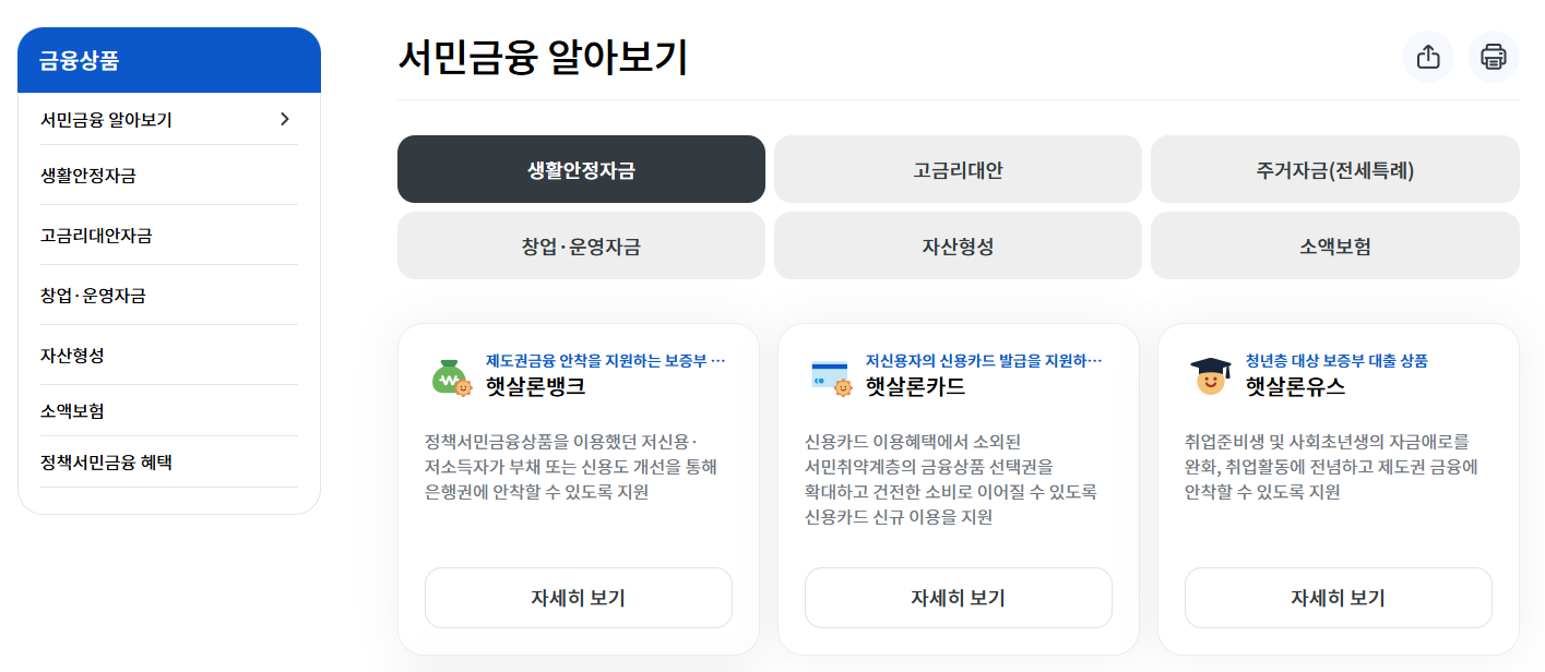 서민금융진흥원의 공식 홈페이지에서는 다양한 대출 상품에 대한 정보를 제공하고 있습니다. 각 상품의 자격 요건, 대출 한도, 금리, 상환 조건 등을 비교하여 자신에게 맞는 상품을 선택할 수 있습니다.