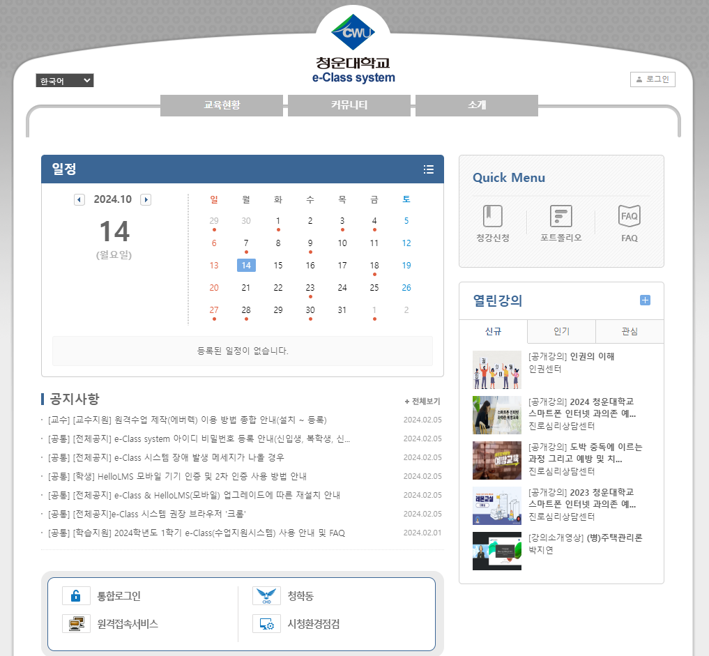 청운대학교 e-Class: 온라인 학습의 새로운 지평